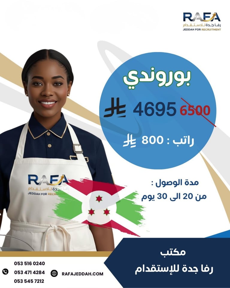 في رفا جدة نؤمن بأن النجاح يبدأ باختيار الكادر المناسب، ولهذا نحرص على اختيار العمالة بعناية فائقة، من خلال شركائنا المعتمدين في الخارج، لتلبية متطلبات العملاء بدقة واحترافية. تجربة استقدام مميزة