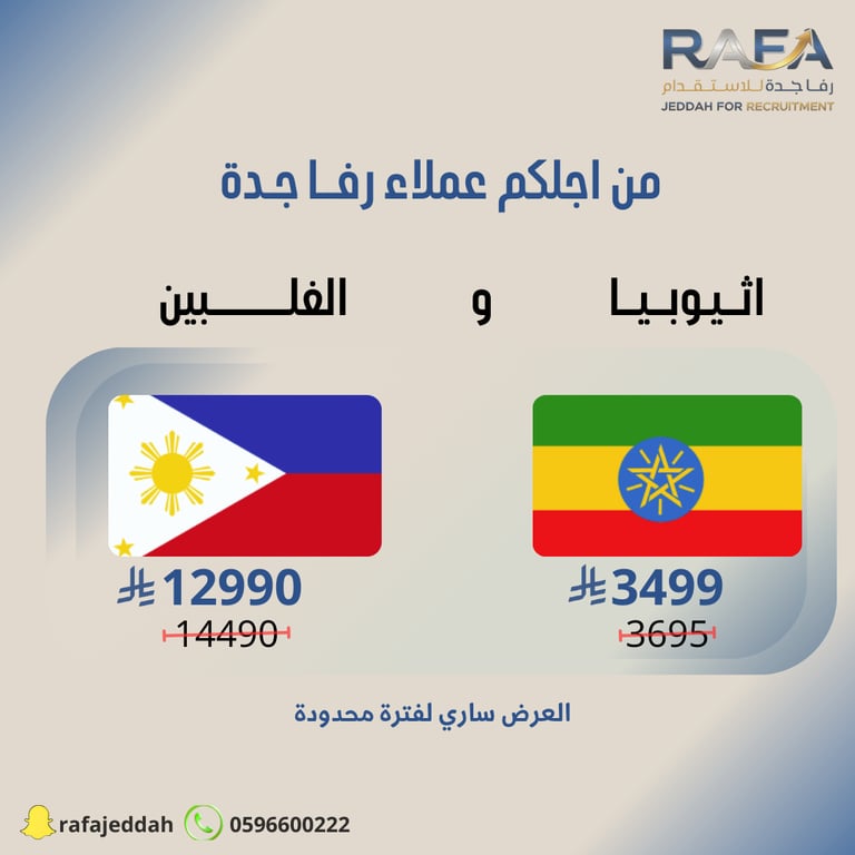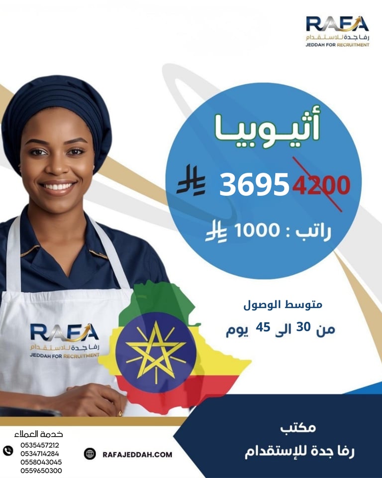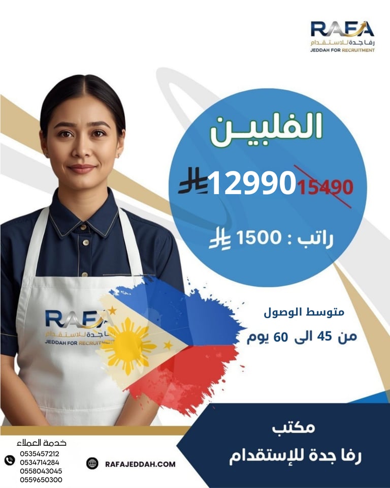 في رفا جدة نؤمن بأن النجاح يبدأ باختيار الكادر المناسب، ولهذا نحرص على اختيار العمالة بعناية فائقة، من خلال شركائنا المعتمدين في الخارج، لتلبية متطلبات العملاء بدقة واحترافية. تجربة استقدام مميزة